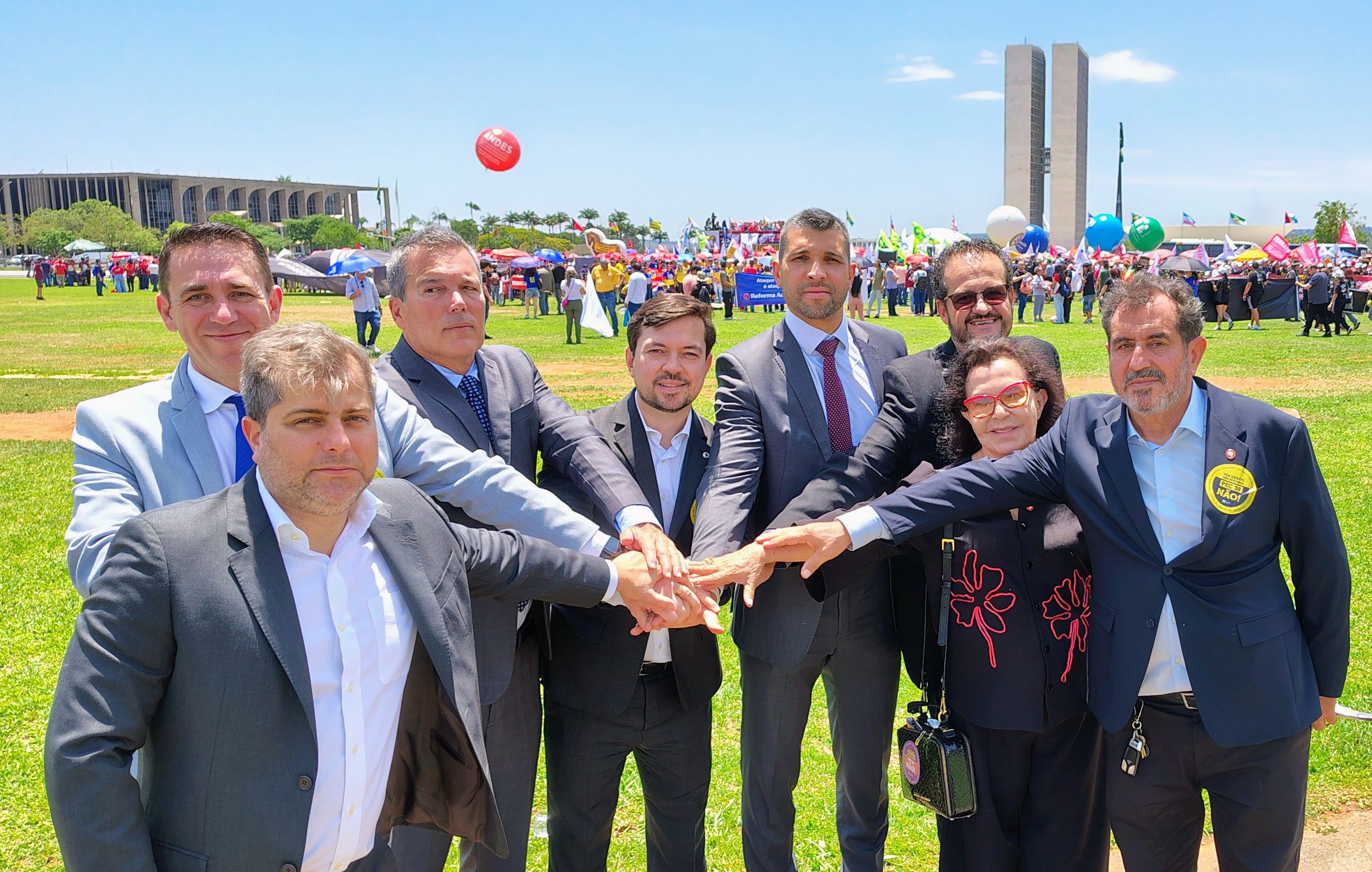 A Marcha Nacional reuniu entidades nacionais, estaduais e municipais que representam diferentes segmentos do serviço público brasileiro. As instituições que compõem o Forvm Nacional da Advocacia Pública Federal — ANAJUR, ANAUNI, ANPPREV e SINPROFAZ — participaram de forma conjunta, reafirmando o compromisso da categoria com a defesa do serviço público.