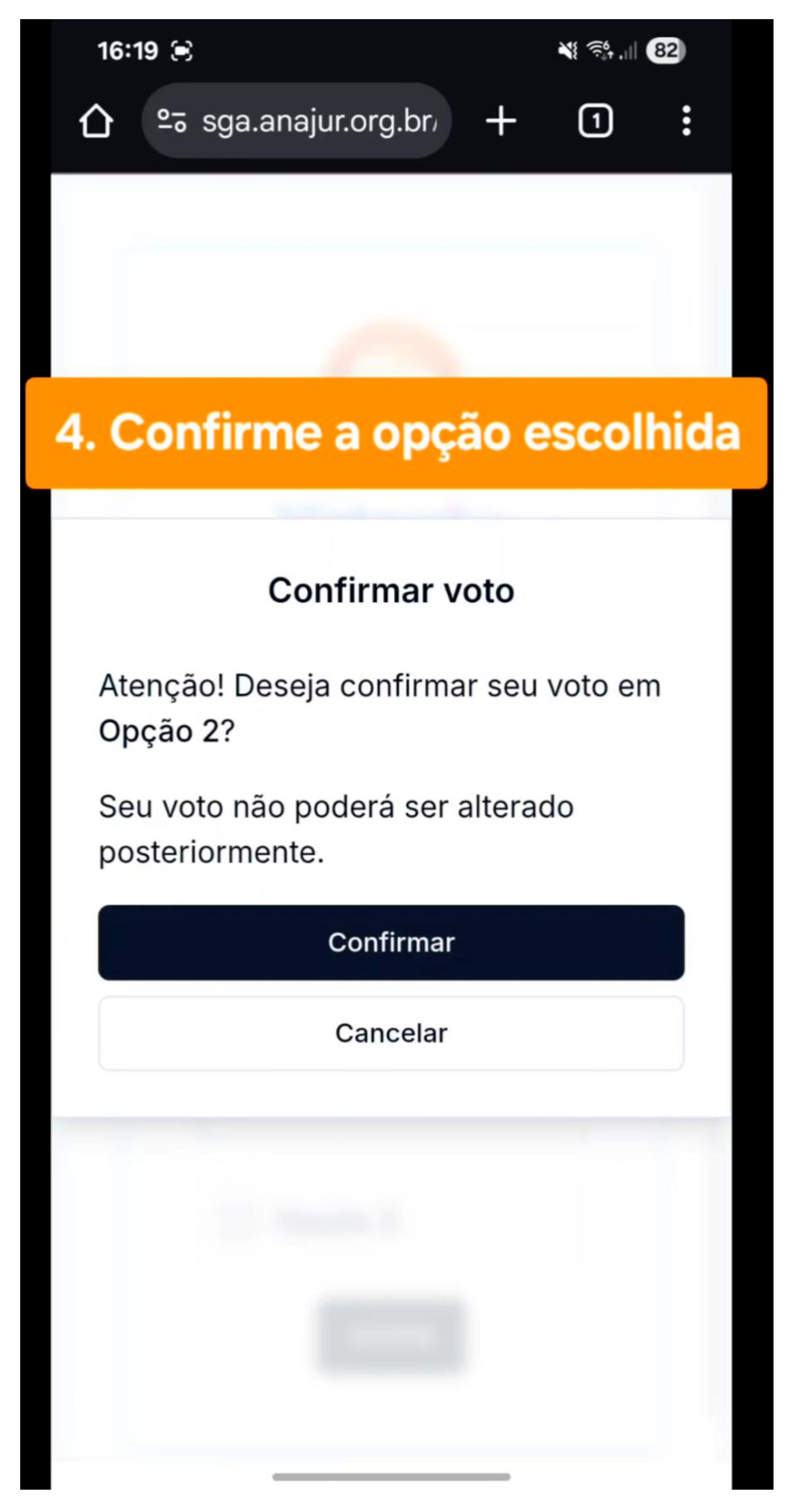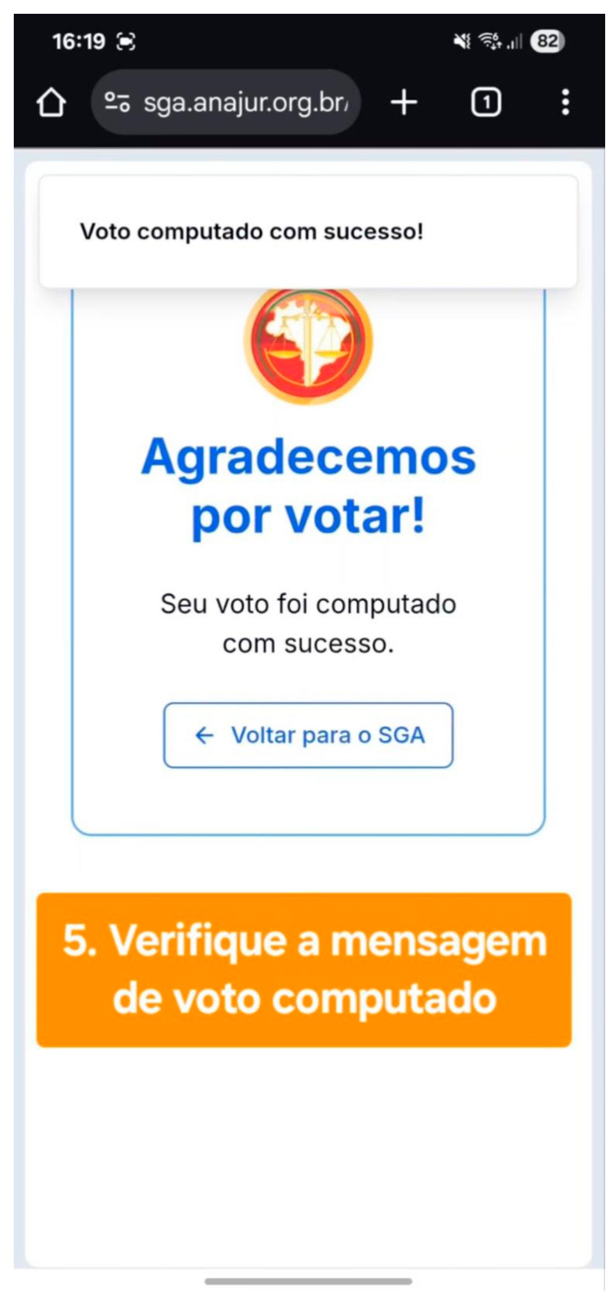 4) Confirme o seu voto e aguarde a mensagem de que ele foi computado com sucesso*.